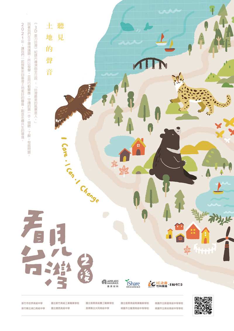 社團法人新竹市愛惜社區推展協會與IC之音邀請台灣應用材料股份有限公司,共同帶著高中生共同觀看《看見台灣》這部紀錄片。每場活動兩小時,一起看見台灣的美麗與哀愁,並邀請知名講師如新竹荒野協會劉月梅會長、聯合大學前校長、清華大學王俊秀教授、作家與詩人的劉克襄老師,以及台客劇場林冠廷導演與同學們分享與對談。活動之後再進行酷卡填寫,分享看過電影後,從I Care. I Can. I Change!三個面向,許下「對土地的承諾」。