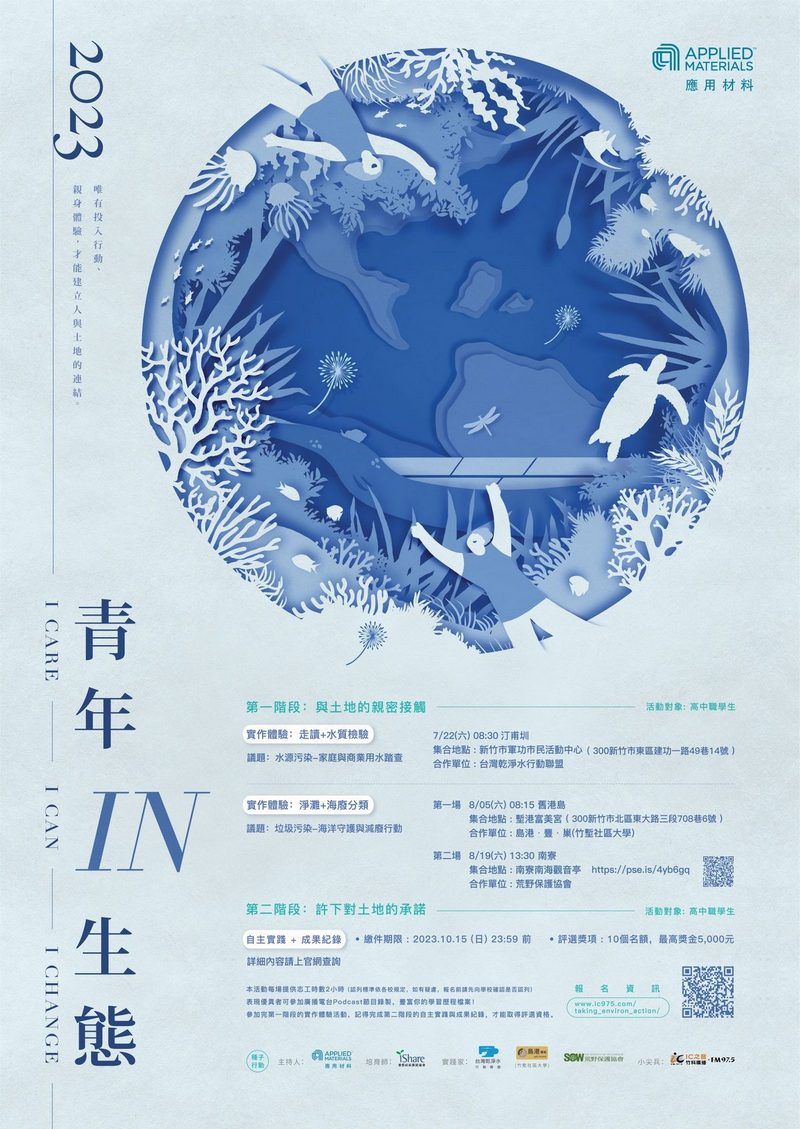 台灣應用材料支持「青年IN生態」環境教育活動,從 I Care. I Can. 到 I Change! 選出全台127位關注環境污染議題的高中生,